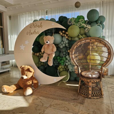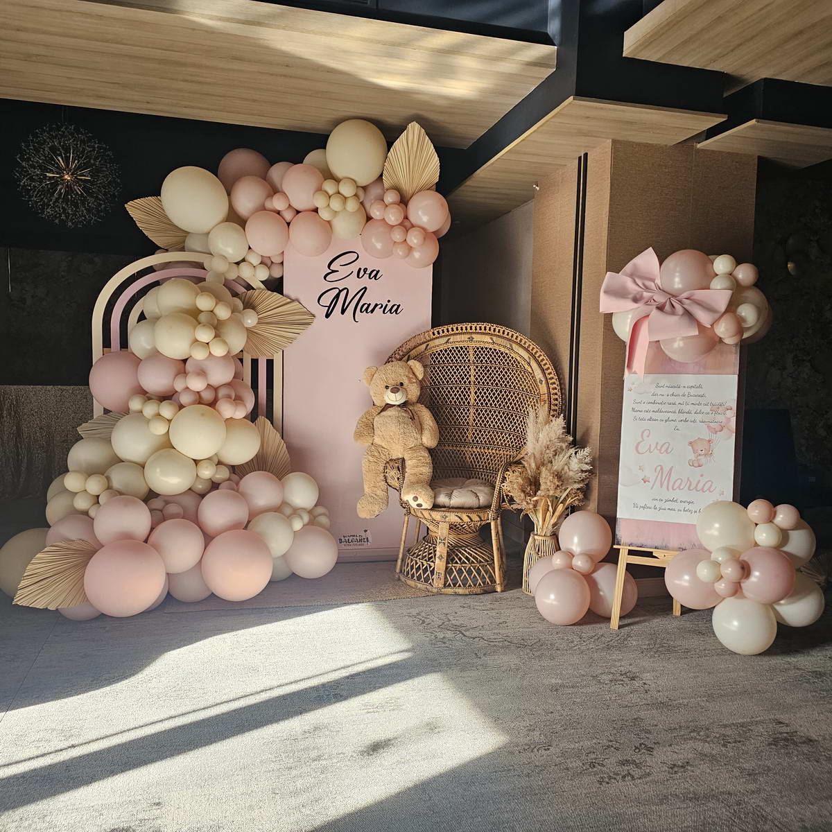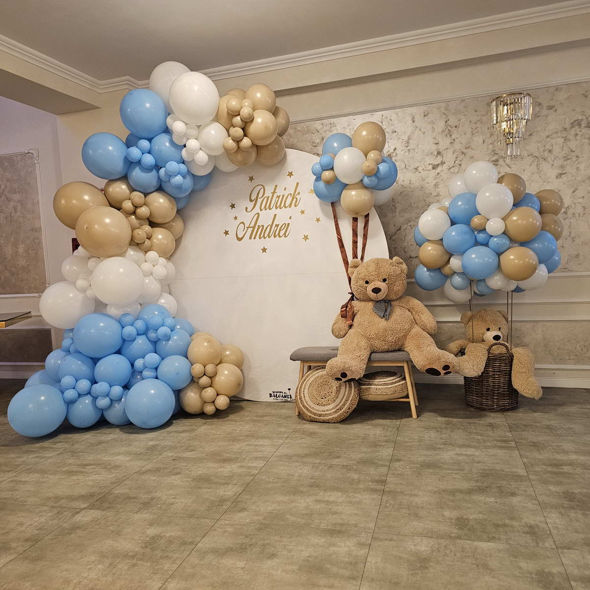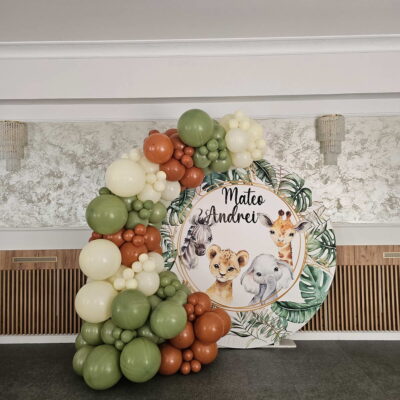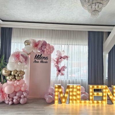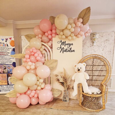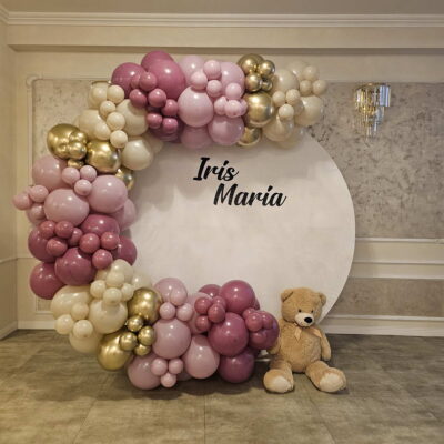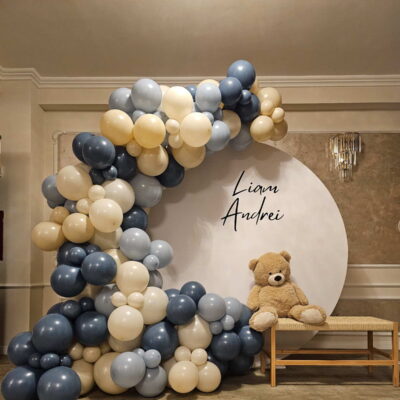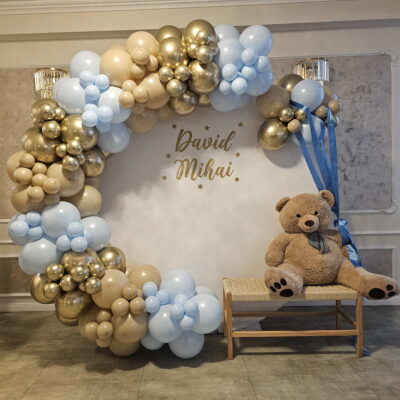 Decor cu baloane pentru botez Botezul este unul dintre cele mai importante momente din viața copiilor noștri, de aceea decorațiunile cu baloane vor aduce cu siguranță un strop de veselie mult așteptatului eveniment.